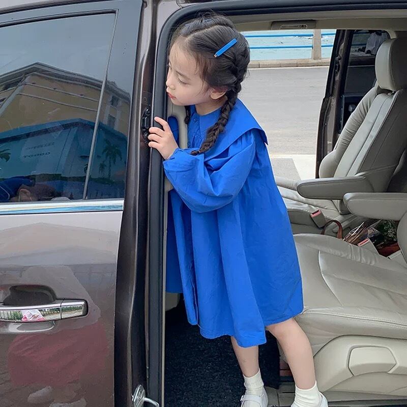 鮮やかなブルーと大きな襟が魅力的なビックカラーワンピースです!